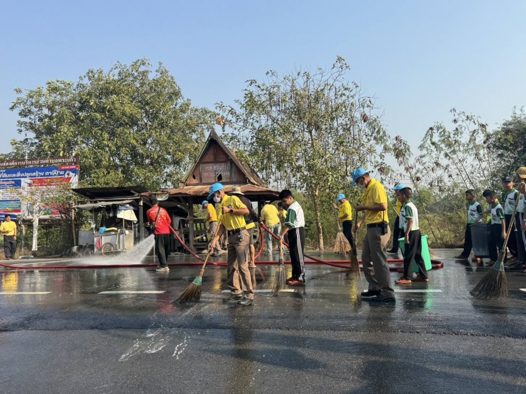 ร่วมกิจกรรมจิตอาสาอำเภอภาชี ดำเนินกิจกรรมจิตอาสาพัฒนาลดหมอกควัน และฝุ่นละอองขนาดเล็ก PM 2.5 โดยทำความสะอาดพื้นผิวถนน เพื่อชะล้างฝุ่นละอองขนาดเล็ก ณ บริเวณทางเข้า อบต.พระแก้ว จว.พระนครศรีอยุธยา