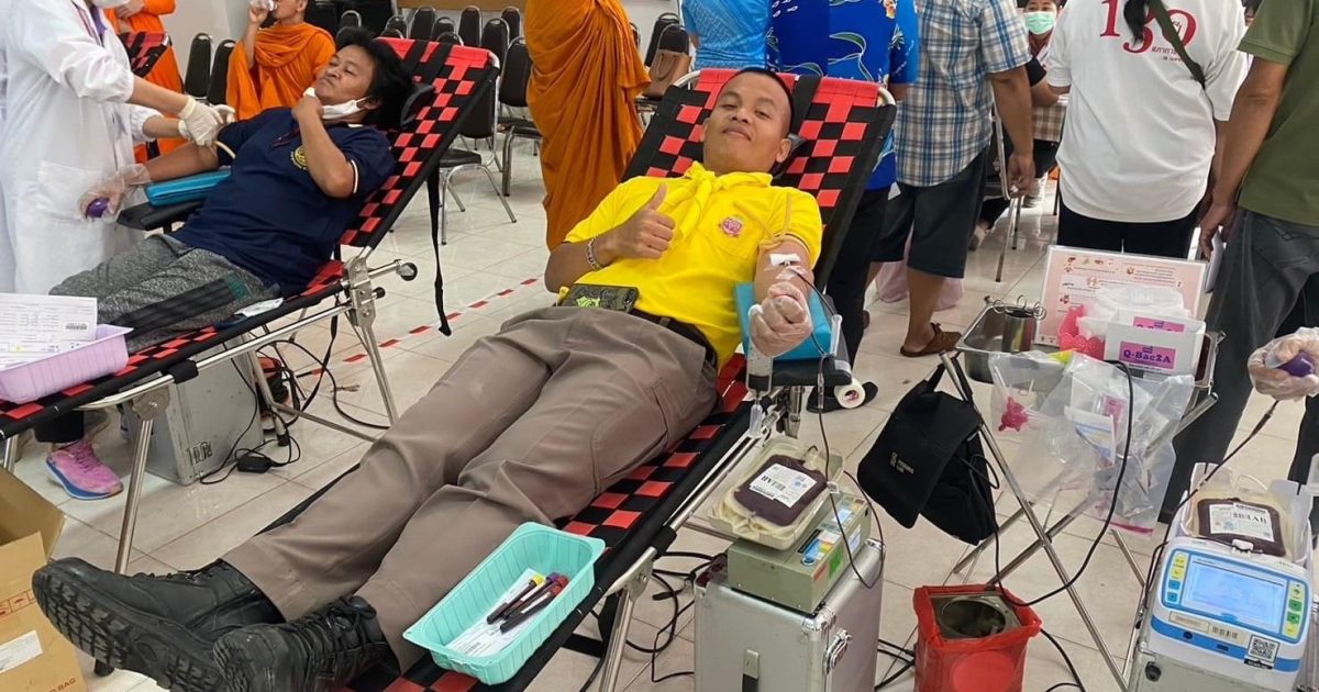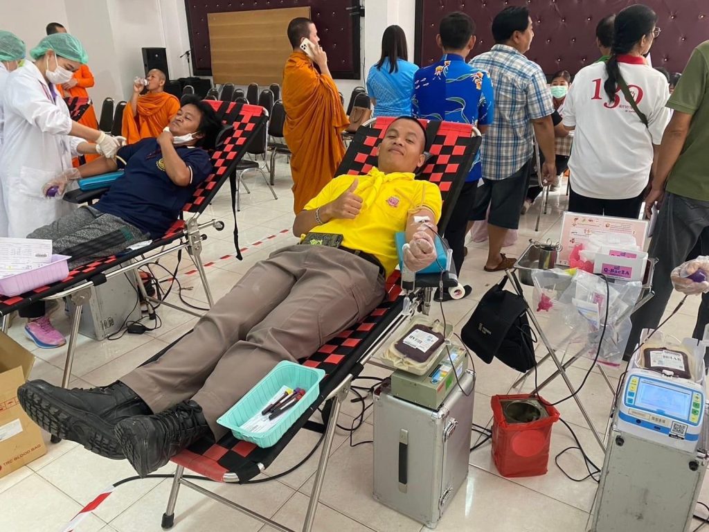 รอง ผกก.ป.สภ.ภาชี พร้อมข้าราชการตำรวจชุดจิตอาสา สภ.ภาชี ร่วมบริจาคโลหิต กับสภากาชาดไทย ณ หอประชุมอำเภอภาชี