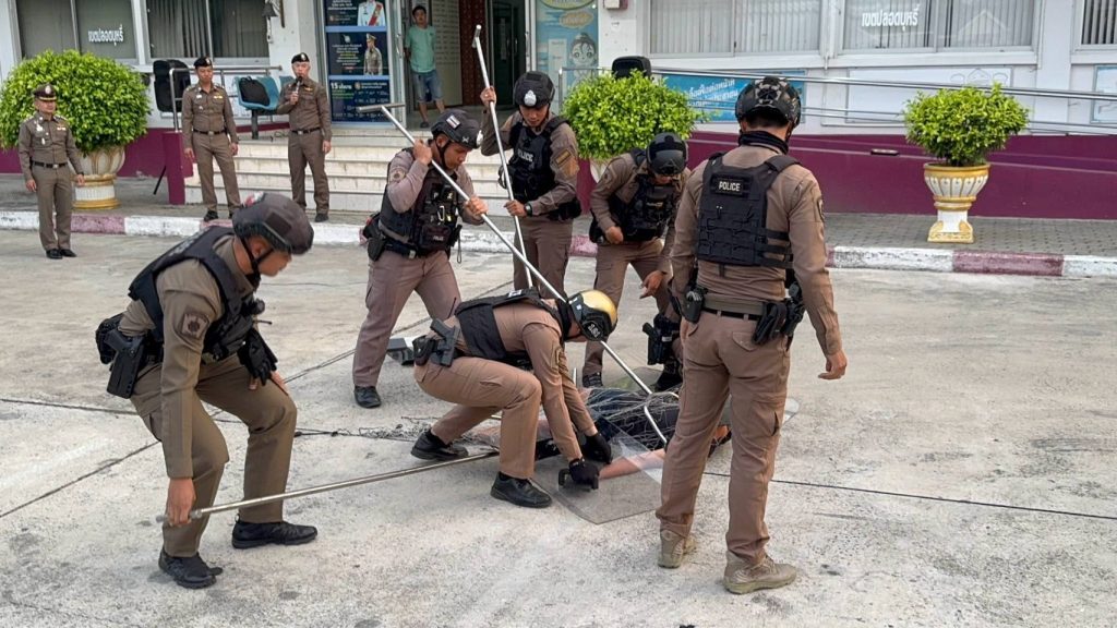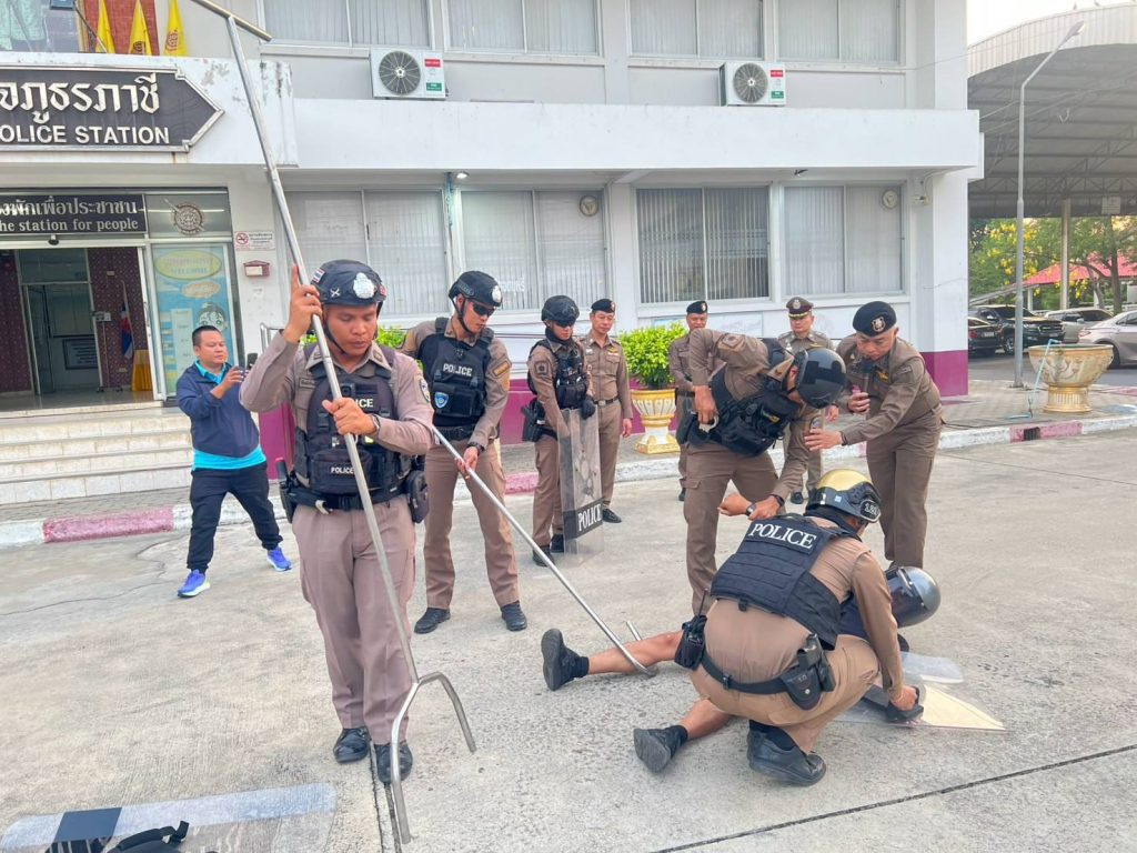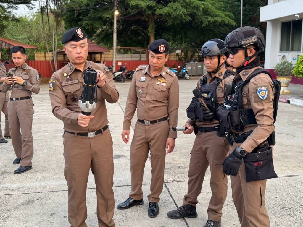 ผบก.ภ.จว.พระนครศรีอยุธยา,พ.ต.อ.สุวิชา ชั้นงาม ผกก.สภ.ภาชี, พ.ต.ท.พีรศักดิ์ เจริญพันธ์ รอง ผกก.ป.สภ.ภาชี,พ.ต.ท.ธีทัต อาศัยนา สวป.สภ.ภาชี และเจ้าหน้าที่ชุดปฏิบัติการสายตรวจ เข้าร่วมการสาธิตและชมการสาธิตดังกล่าว หน้าสภ.ภาชี