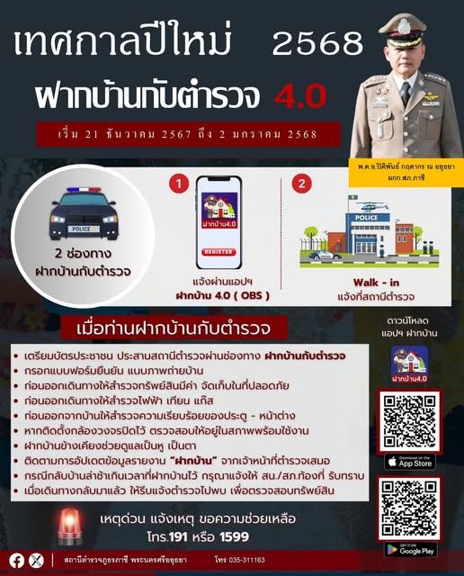 ปีใหม่ 2567 สุขใจ หายห่วง ฝากบ้านไว้ให้ตำรวจช่วยดูแล