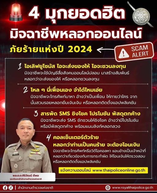แจ้งประชาสัมพันธ์ เตือนภัยพี่น้องประชาชนให้ทราบมุกยอดฮิตของมิจฉาชีพหลอกลวงออนไลน์ด้วยความปรารถนาจาก สภ.ภาชี 24 ธันวาคม 2567 โดย admin / ข่าวประชาสัมพันธ์,ข่าวกิจกรรม,ข่าวประชาสัมพันธ์,ข่าวประชาสัมพันธ์,ข่าวฝากประชาสัมพันธ์ Facebook iconFacebookTwitter iconTwitterLINE iconLine