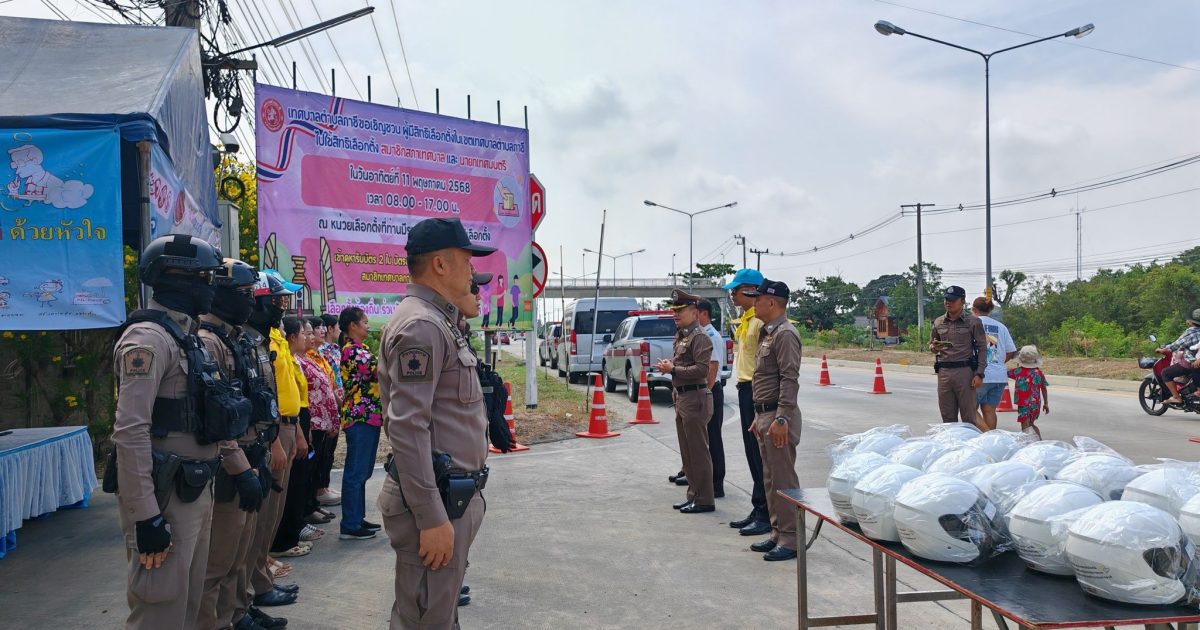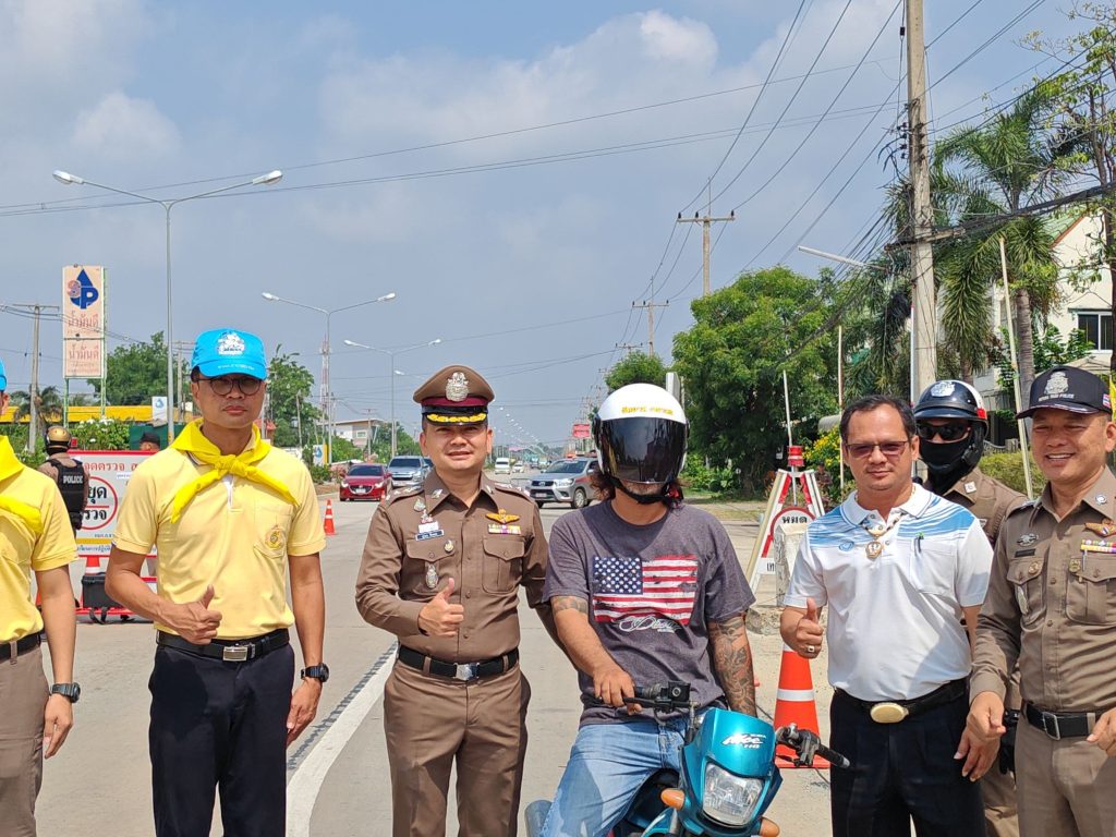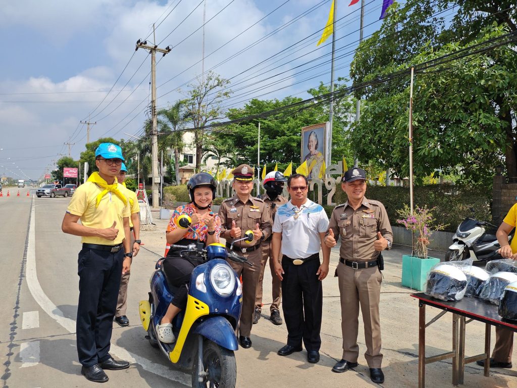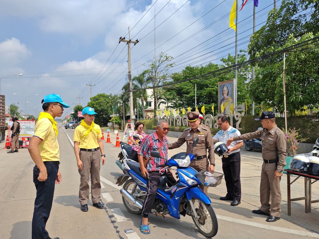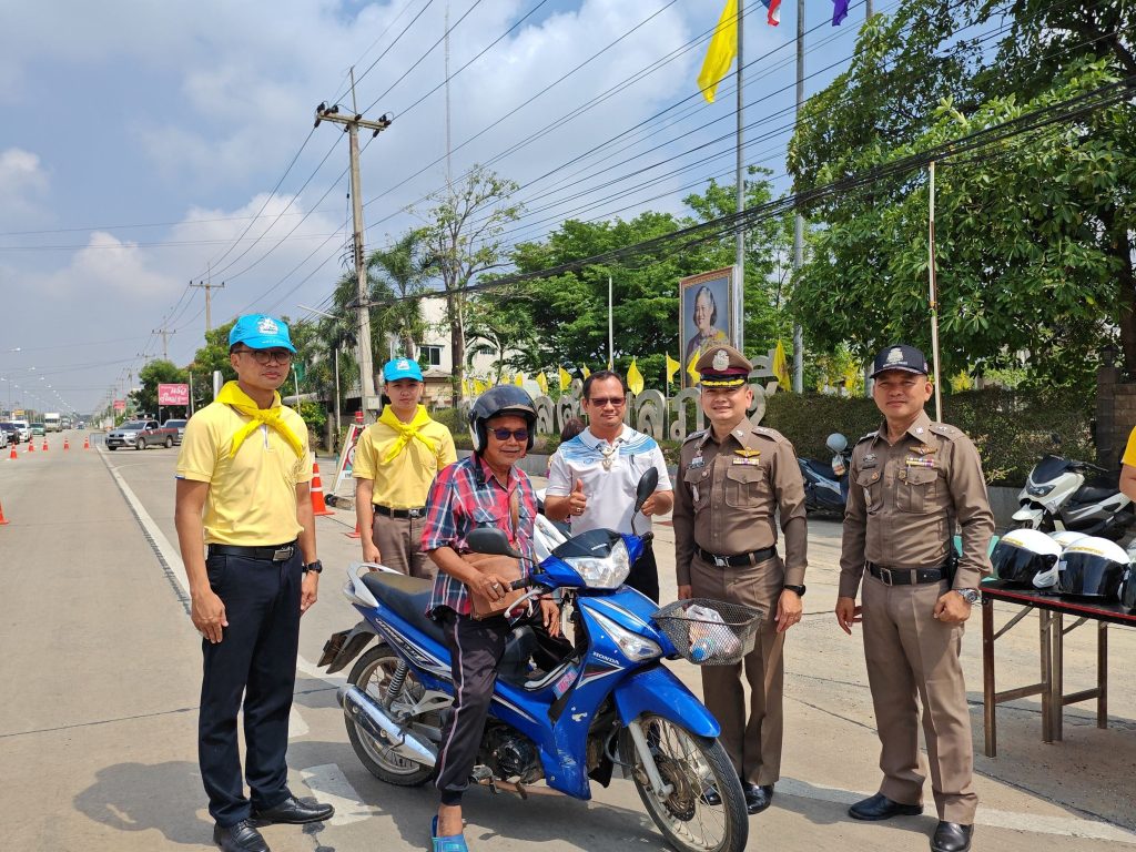 แจกหมวกกันน็อคนิรภัย ตามนโยบาย ขับขี่ปลอดภัย และบันทึกว่ากล่าวตักเตือนผู้ที่กระทำผิดกฎจราจร ในระบบ PTM ON MOBILE