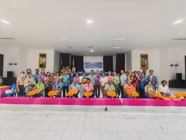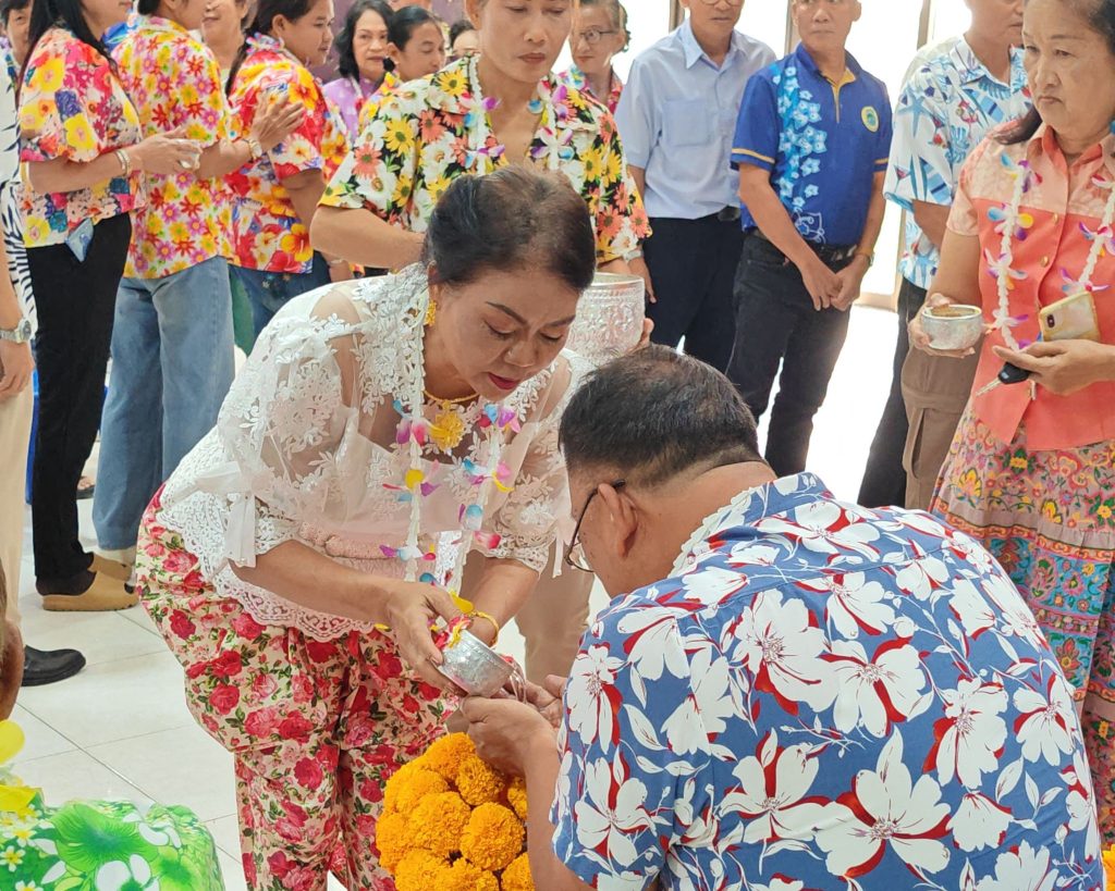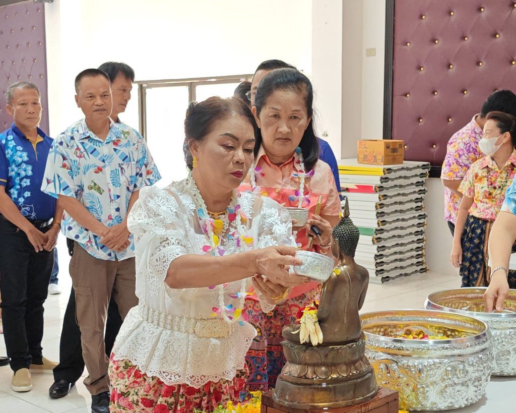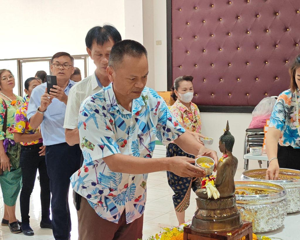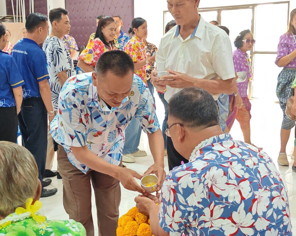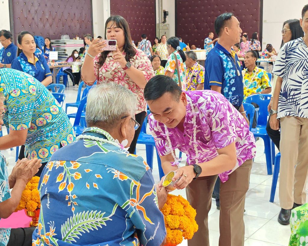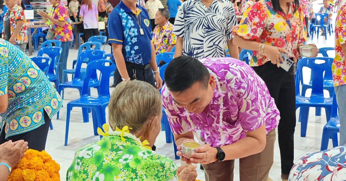 ร่วมรดน้ำดำหัว นายอนุพันธ์ ยุวนบุณย์ นายอำเภอภาชี และผู้สูงอายุ ในพิธีสงกรานต์รื่นเริง