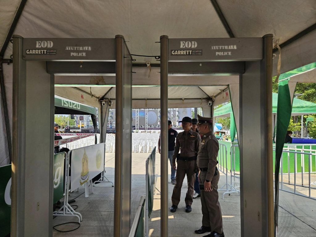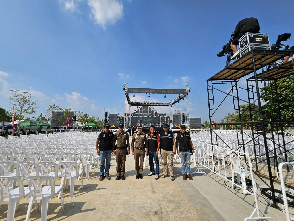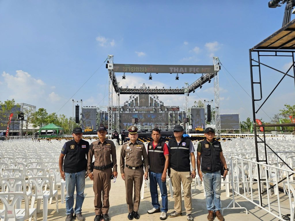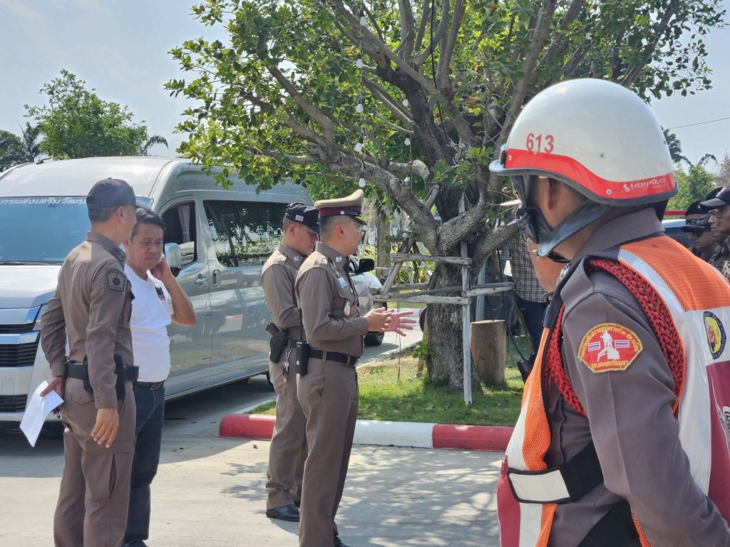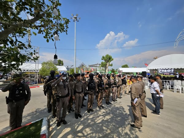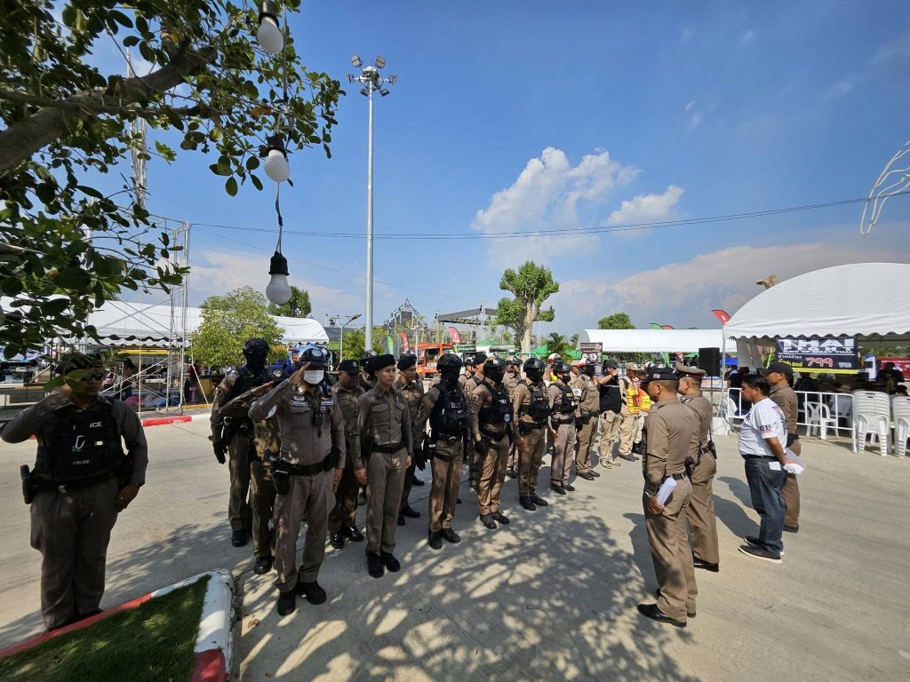 ปล่อยแถวข้าราชการตำรวจ สภ.ภาชี ชี้แจงภารกิจรักษาความสงบและอำนวยความสะดวกการจราจร งานชกมวยนายขนมต้ม ไทยไฟต์