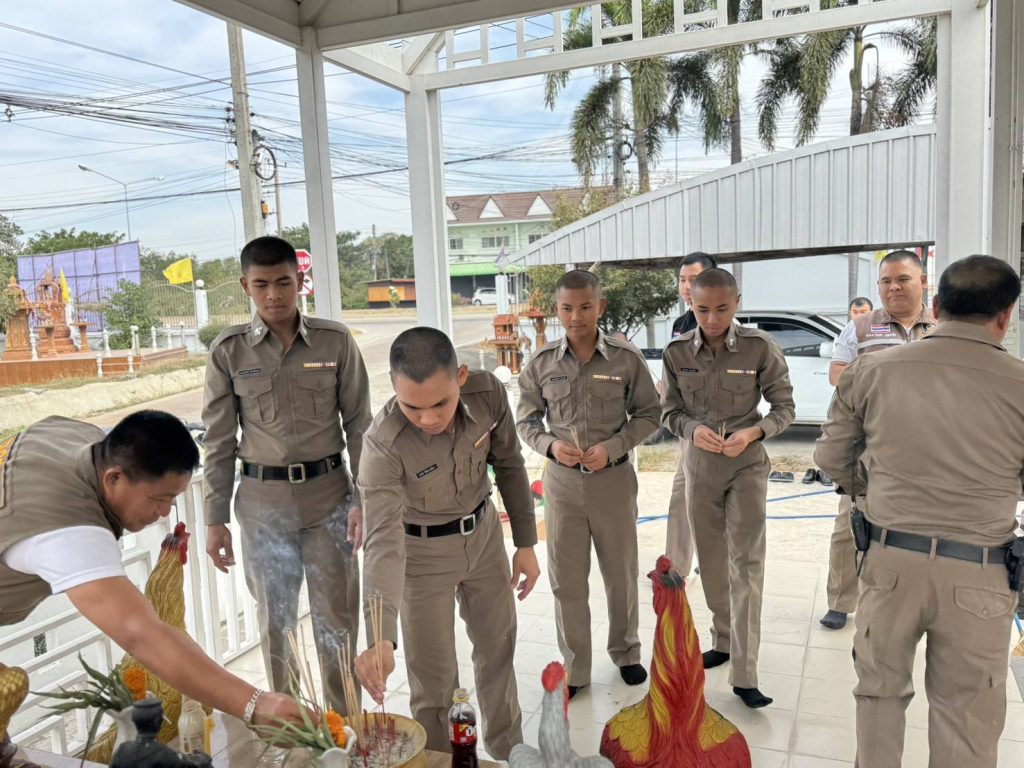 ภาชี2-0 พร้อมกำลัง นำ นสต.ฝึกงาน 5 นาย ปล่อยแถวเคารพธงชาติ ,พาแนะนำสถานที่ และสักการะสิ่งศักดิ์สิทธิ์ ภายใน สภ.เริ่มการฝึกปฏิบัติงานธุระการ แต่ละสายงานในวันนี้