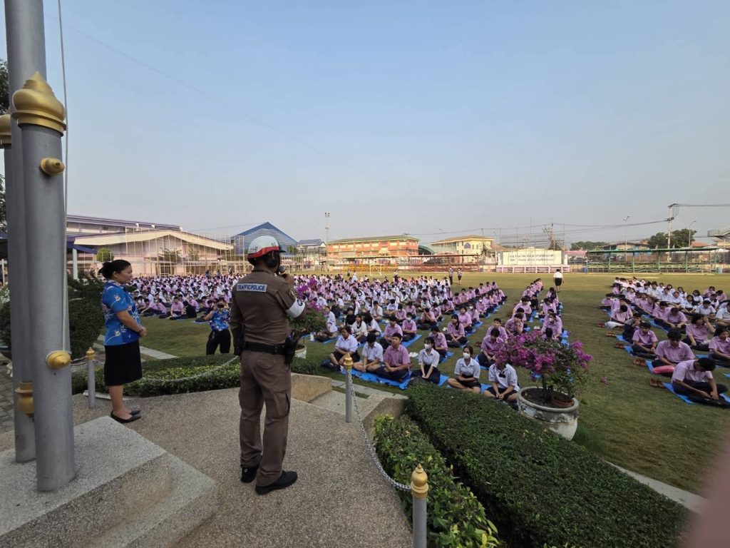 ว.4 โครงการครู 5 นาที ขับขี่ปลอดภัย พร้อมประชาสัมพันธ์มาตรการป้องกันและลดฝุ่น pm 2.5 โรงเรียนภาชีสุนทร ฯ