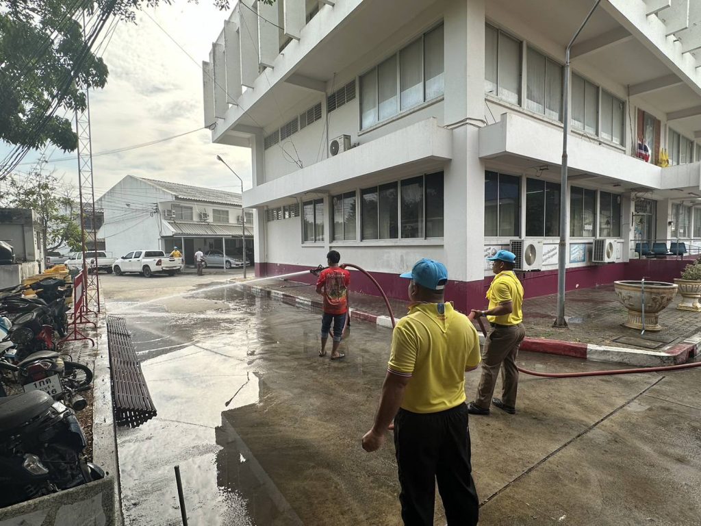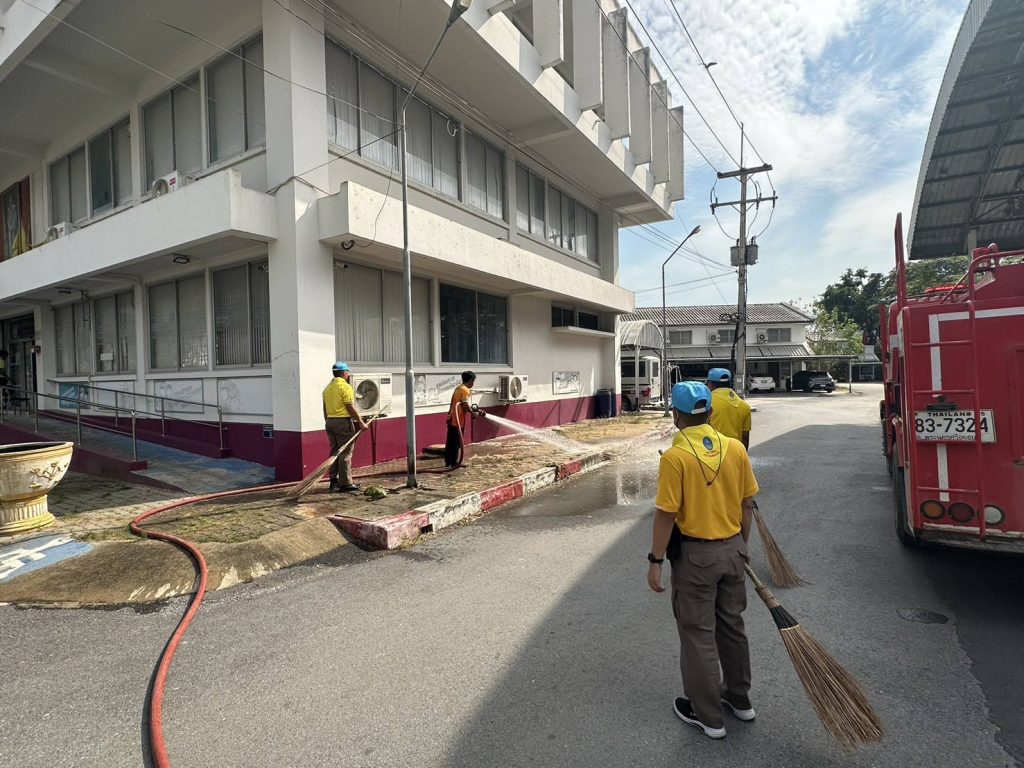 ร่วมทำความสะอาด ปรับภูมิทัศน์ ภายในและภายนอกของ สภ.ภาชี เพื่อลดค่าฝุ่นpm.2.5 และขอขอบคุณท่านนายกและเจ้าหน้าที่ อบต.ดอนหญ้านาง ในการสนับสนุนรถน้ำมาฉีดล้างพื้นชำระฝุ่น