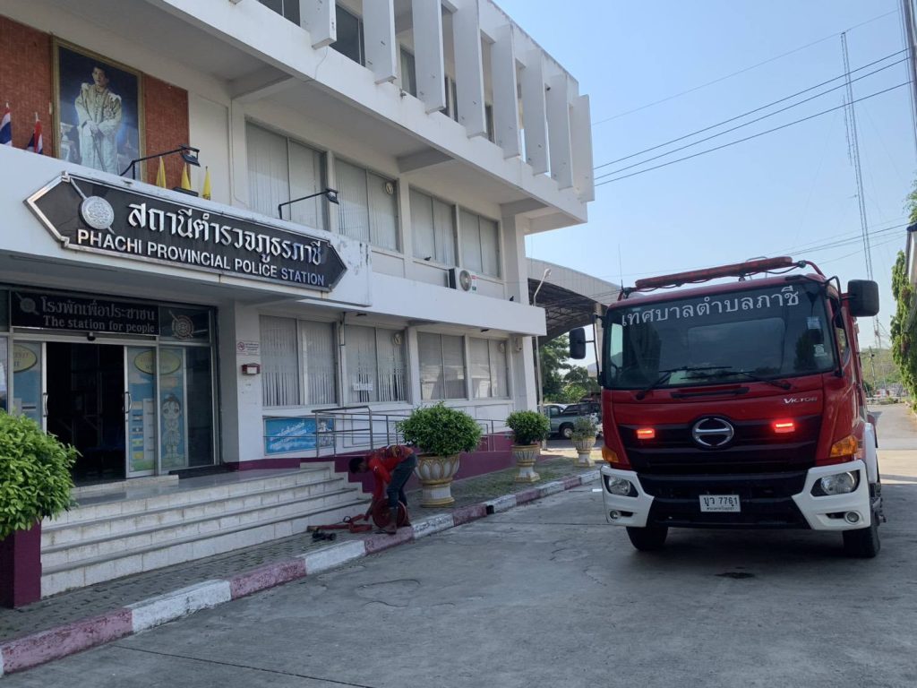 ในนาม ตร.สภ.ภาชี ขอขอบคุณท่านนายกสเกน จันทร์ผดุงสุข นายกเทศมนตรี เทศบาลภาชีและจนท.เทศบาล ที่สนับสนุนรถน้ำมาฉีดล้างทำความสะอาดสถานี(ลดฝุ่นค่าpm.2.5)