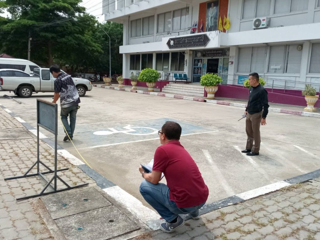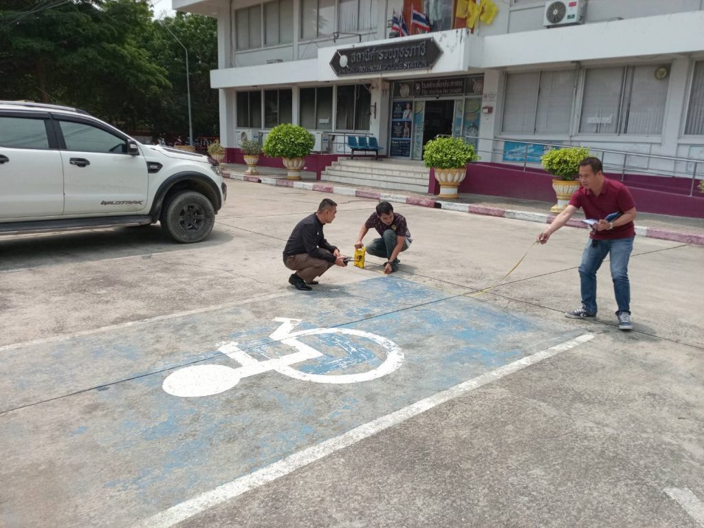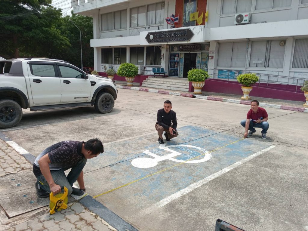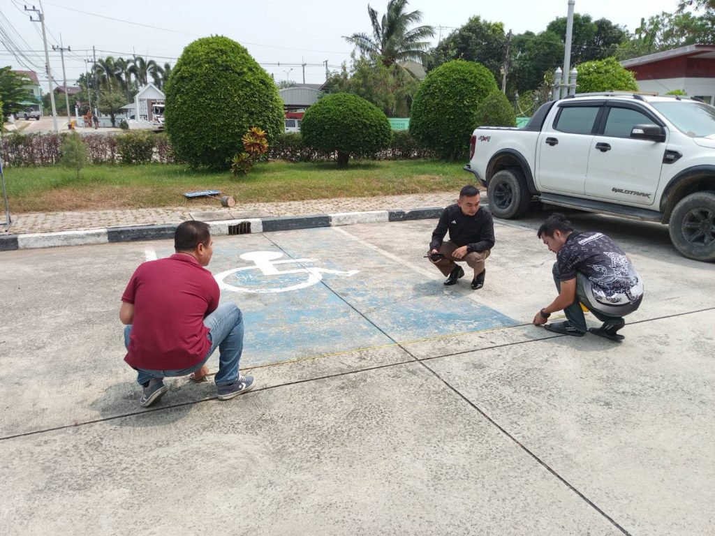 พ.ต.อ.สุวิชา ชั้นงาม ผกก.สภ.ภาชี ขอรับการสนับสนุนจากทางเทศบาลตำบลภาชี ในการทาสีเส้นขาวแดง /ขาวดำ/ที่จอดรถคนพิการ เพื่อปรับปรุงภูมิทัศน์บริเวณโดยรอบ สภ.ภาชี โดยมี ผอ.กองช่าง พร้อม จนท.มาตรวจพื้นที่ เพื่อปรับปรุงต่อไป