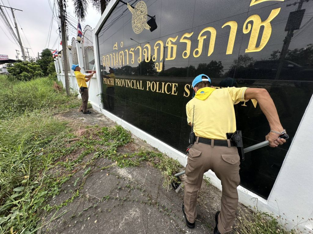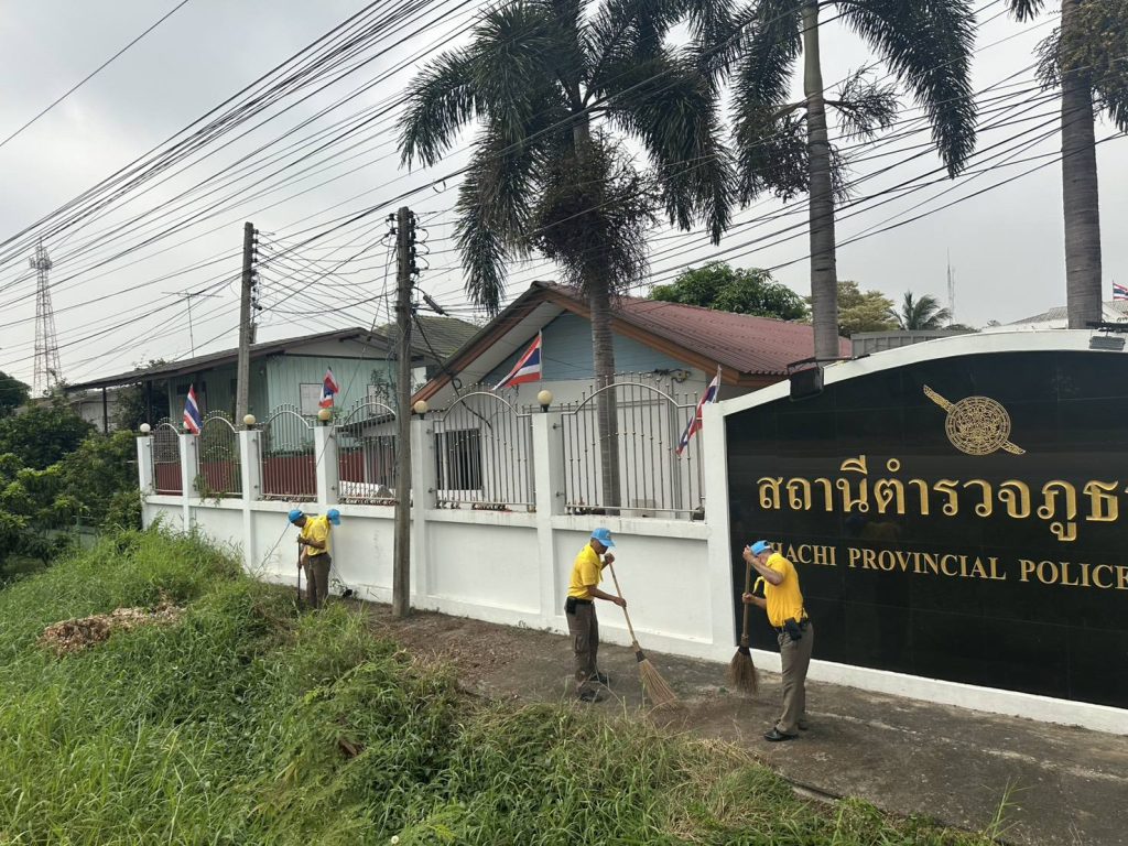 พร้อมข้าราชการตำรวจ ชุดจิตอาสา สภ.ภาชี ร่วมกิจกรรมจิตอาสาพัฒนาปรับปรุงภูมิทัศน์บริเวณรอบที่ทำการอำเภอภาชี โดยเขตรับผิดชอบของ สภ.ภาชี บริเวณหน้าป้าย สภ.ภาชี