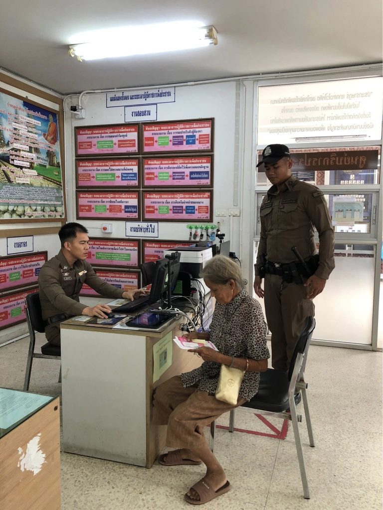 โดยภาชี20 พร้อมกำลัง ช่วยเหลือนำผู้สูงอายุเข้าแจ้งความเอกสารธนาคารหายเพื่อขอเอกสารใหม่จากทางธนาคารต่อไป