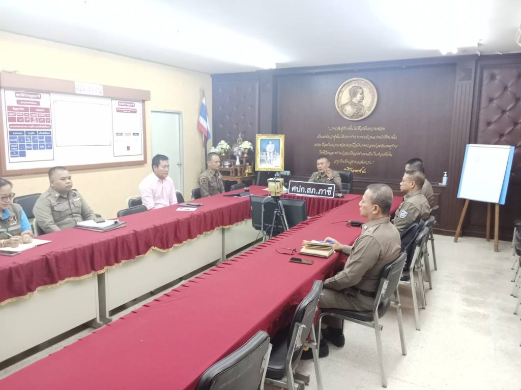 พ.ต.อ.ปิติพันธ์ กฤดากร ณ อยุธยา ผกก.สภ.ภาชี ,ภาชี 2, ภาชี 3 ,ภาชี 41 ,ภาชี 21 พร้อม จนท.งานอำนวยการ ,ธุรการ และจนท.การเงิน ร่วมประชุมรับมอบนโยบายการบริหารราชการให้กับ หัวหน้างานไปถ่ายทอดให้ผู้ใต้บังคับบัญชารับทราบ ณ ห้องประชุม ศปก.สภ.ภาชี