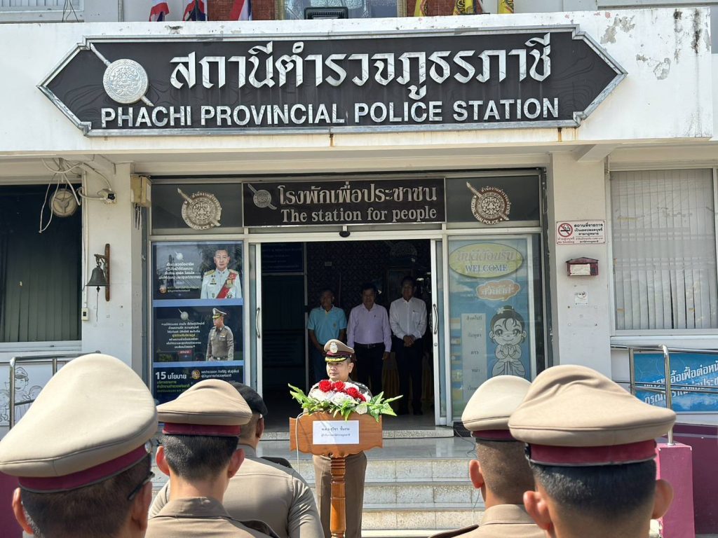 ข้าราชการตำรวจพร้อมคณะ กต.ตร.สภ.ภาชี ขอแสดงความยินดีต้อนรับท่าน พ.ต.อ.สุวิชา ชั้นงาม ผกก.สภ.บ้านแพรก /รรท.ผกก.สภ.ปากคลองรังสิต ภ.จว.ปทุมธานี ได้รับการแต่งตั้งมาดำรงตำแหน่ง ผกก.สภ.ภาชี กล่าวต้อนรับ ทักทาย และไหว้สิ่งศักดิ์สิทธิ์พระภูมิ,เจ้าที่ศาลตายายและหลวงพ่อรวยหน้าสถานีตำรวจ ในนามข้าราชการตำรวจ สภ.ภาชี